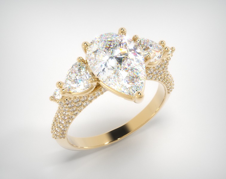 טבעת מושלמת ומיוחדת בעיצוב ייחודי ומרגש עשויה זהב 14K מכוסה יהלומים מכל צדדיה ובראשם מתנוסס יהלום טיפה במשקל 2.15 קראט, מצדדיו עוד שני יהלומי לב מרשימים במשקל 0.80 קראט טבעת שאי אפשר להתעלם ממנה וגם לא ממך