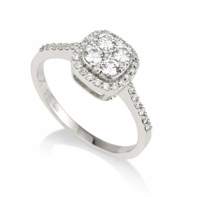 טבעת זהב 14K מרובעת, משובצת יהלומים יפים ועדינים