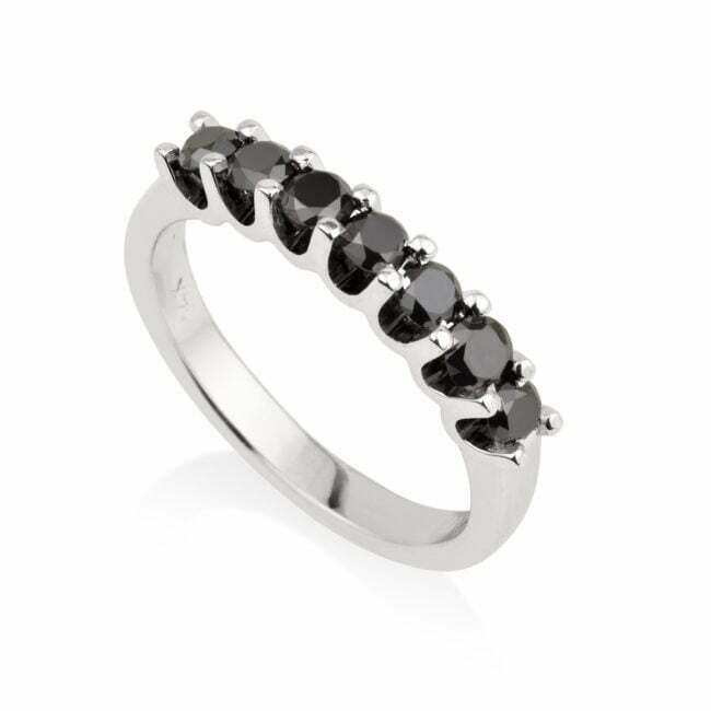 טבעת יהלומים שחורים מרשימה ומיוחדת מזהב 14 קראט, הטבעת מעוטרת בשבעה יהלומים שחורים שובי לב, מעוצבים בקפידה לשלמות. תכשיט אלגנטי זה מציע פיתוי נצחי המשלב יוקרה ותחכום ללא מאמץ. טבעת יהלומים שחורים זמינה בזהב אדום, לבן או צהוב. הטבעת הזו היא לא רק אביזר; זו הצהרה על הסגנון הייחודי שלכם. הזוהר החם של הזהב האדום, האלגנטיות הקלאסית של הזהב הלבן, או הקסם המסורתי של זהב צהוב - לא משנה באיזה צבע זהב תבחרו הוא ישתלב בצורה משולמת עם שבעת היהלומים השחורים המשובצים בקשת על הטבעת. שבעת היהלומים השחורים, שנבחרו בקפידה בשל איכותם וברקם יוצאי דופן, משובצים בשורה ללא רבב, בזה אחר זה, ויוצרים משחק אור מהפנט. הבחירה היא שלכם - בחרו ביהלומים במשקל 0.45 קראט לאלגנטיות עדינה ומאופקת, או בחרו ביהלומים במשקל 0.7 קראט עבור נוכחות נועזת וכובשת. הטבעת הזו היא יותר מסתם תכשיט; זהו סמל לאינדיבידואליות, לחן ולטעם ללא דופי. בין אם אתם משתתפים באירוע מיוחד, חוגגים אבן דרך בחיים, או פשוט מחשפים דרך מיוחדת ואלגנטית לביטוי עצמי, טבעת יהלומים שחורים משובצת ב-7 יהלומים שחורים היא הבחירה המושלמת עבורכם.